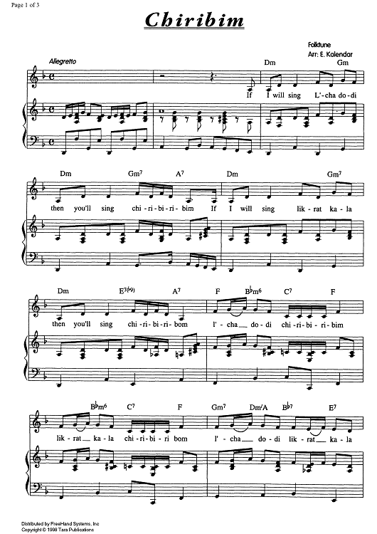 Digital Sheet Music for Chiribim by , Edward Kalendar, Traditional scored for Voice/Piano; id:343816