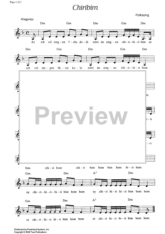 Digital Sheet Music for Chiribim - Score by Velvel Pasternak, Traditional scored for Any Klezmer instrumentation; id:343923