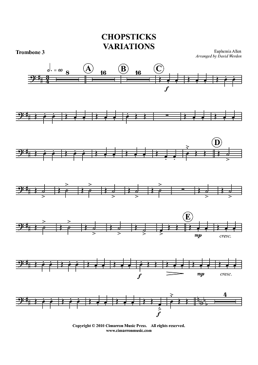 "Chopsticks Variations - Trombone 3" Sheet Music by Euphemia Allen