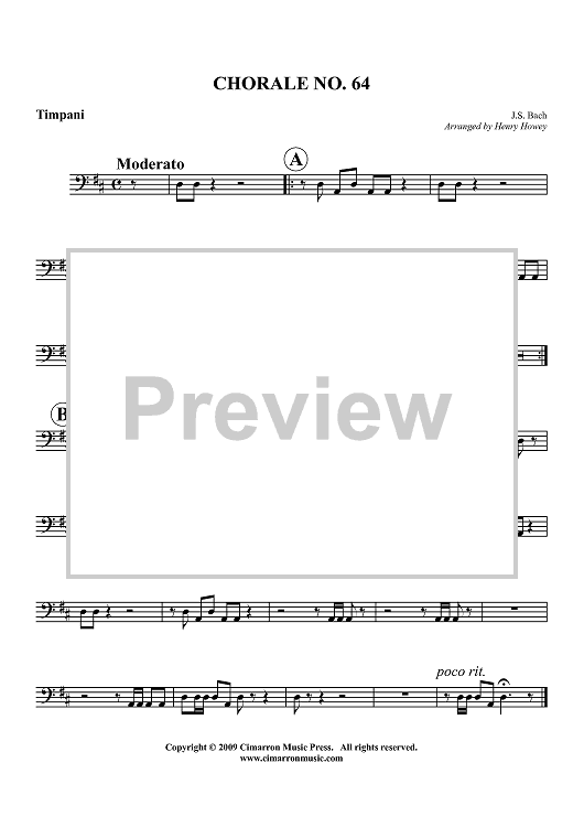 Digital Sheet Music for Chorale No. 64 - Timpani by Henry Howey, Johann Sebastian Bach scored for Brass Ensemble; id:416498