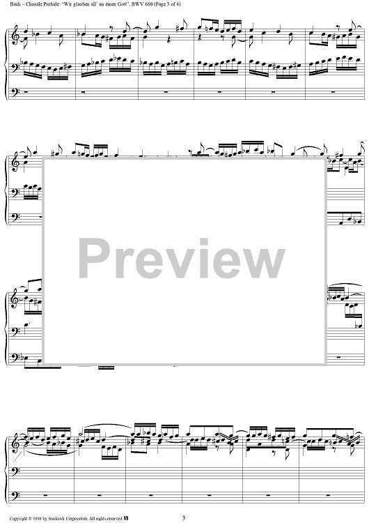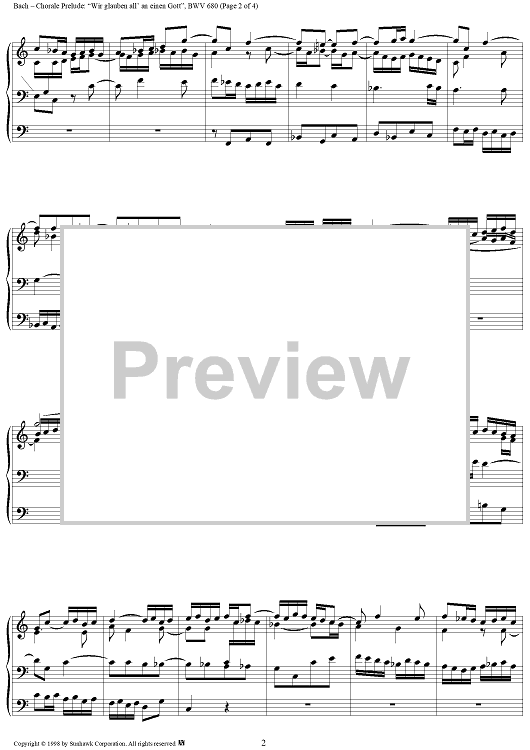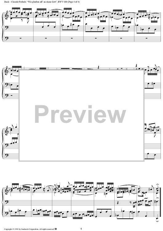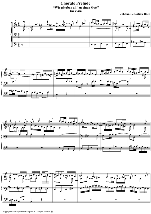 Digital Sheet Music for Chorale Prelude, BWV 680: Wir glauben all' an einen Gott by Johann Sebastian Bach scored for Organ Solo; id:95339