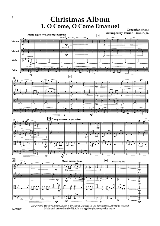 Digital Sheet Music for Christmas Album - Score by Various, Vernon Taranto, Jr. scored for String Quartet; id:461008