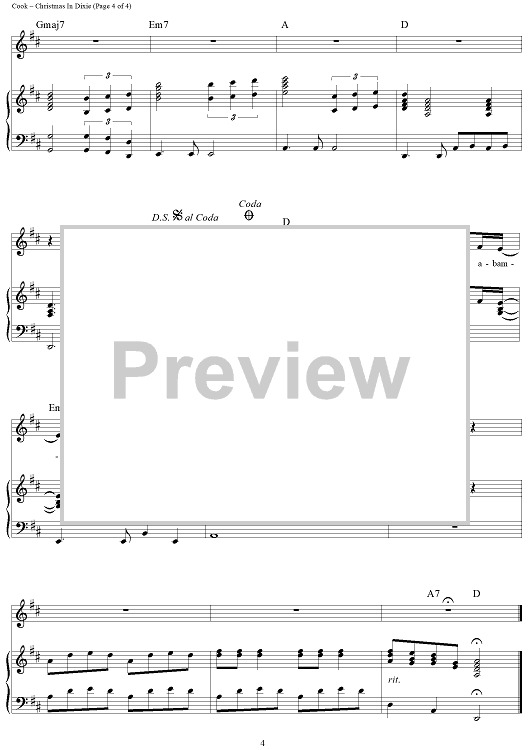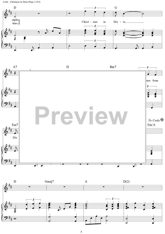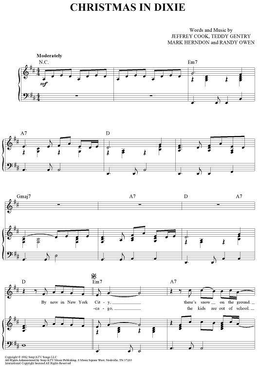 Digital Sheet Music for Christmas In Dixie by Randy Owen, Teddy Gentry, Jeff Cook, Alabama, Mark Herndon scored for Piano/Vocal/Chords; id:389739