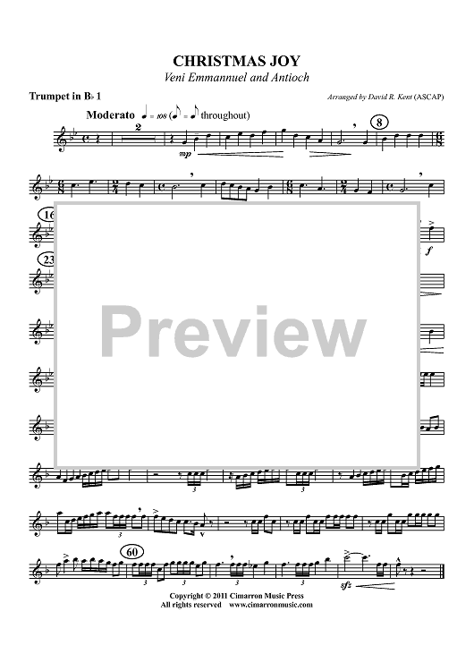 Digital Sheet Music for Christmas Joy - Veni Emmannuel and Antioch - Trumpet 1 in Bb by Traditional, David R. Kent scored for Brass Quintet; id:425010