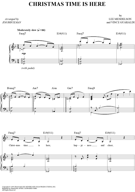 Digital Sheet Music for Christmas Time Is Here by Vince Guaraldi, Jim Brickman, Lee Mendelson scored for Piano/Vocal/Chords; id:442851