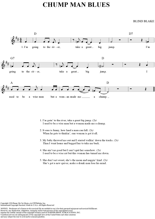 "Chump Man Blues" Sheet Music by Blind Blake