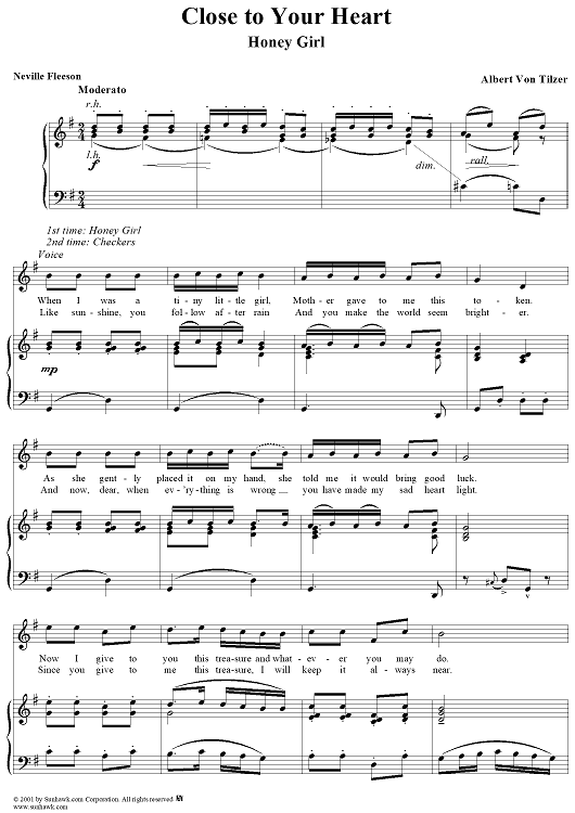 Digital Sheet Music for Close To Your Heart by Albert von Tilzer, Neville Fleeson scored for Piano/Vocal; id:264578