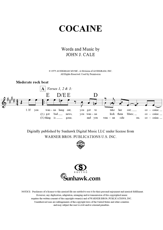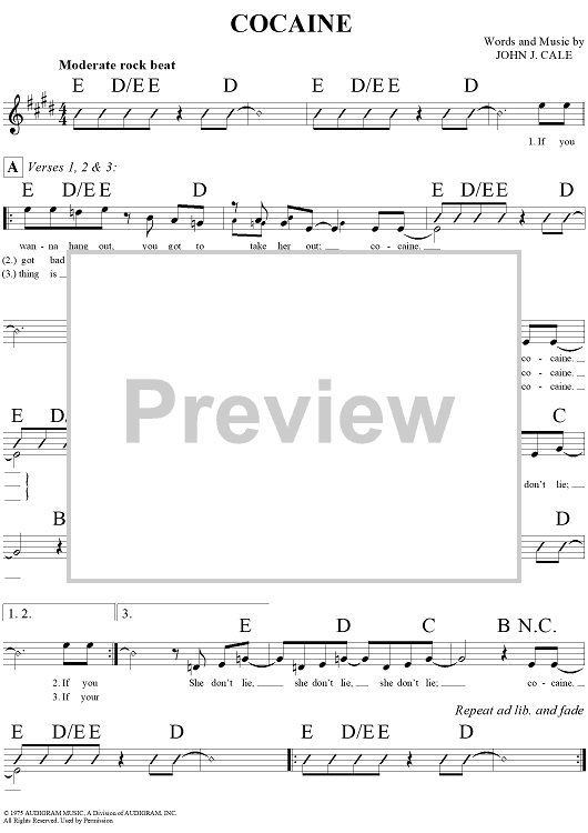 Digital Sheet Music for Cocaine by J. J. Cale scored for Lead Sheet; id:290845