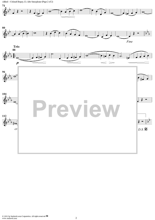 Digital Sheet Music for Colonel Bogey March - Alto Saxophone by Kenneth J. Alford scored for Concert Band; id:281202