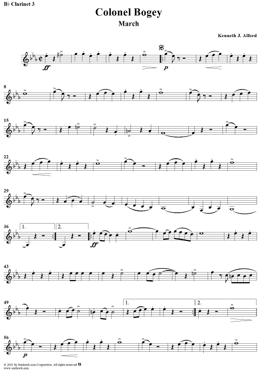 "Colonel Bogey March - Clarinet 3" Sheet Music by Kenneth J. Alford