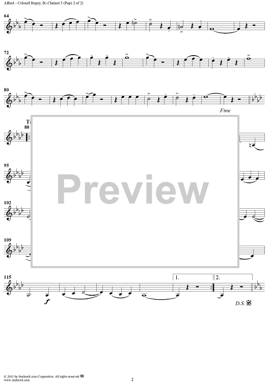 Digital Sheet Music for Colonel Bogey March - Clarinet 3 by Kenneth J. Alford scored for Concert Band; id:281560