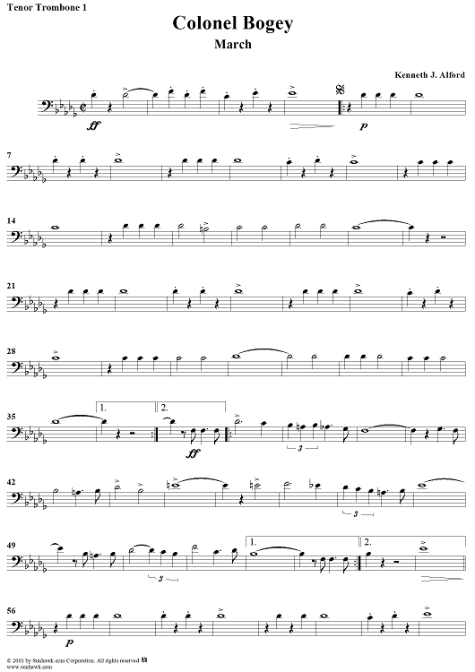 "Colonel Bogey March - Trombone 1" Sheet Music by Kenneth J. Alford