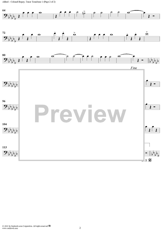 Digital Sheet Music for Colonel Bogey March - Trombone 1 by Kenneth J. Alford scored for Concert Band; id:281711