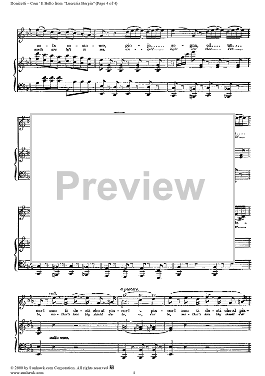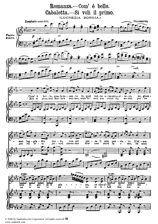 Digital Sheet Music for Com' è bello by Gaetano Donizetti scored for Voice/Piano; id:254454