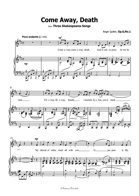 "Come Away, Death, Op.6 No.1 from Three Shakespeares Songs" Sheet Music by Roger Quilter