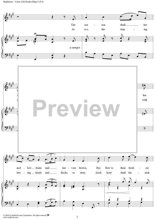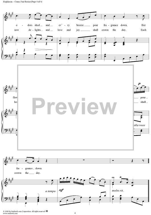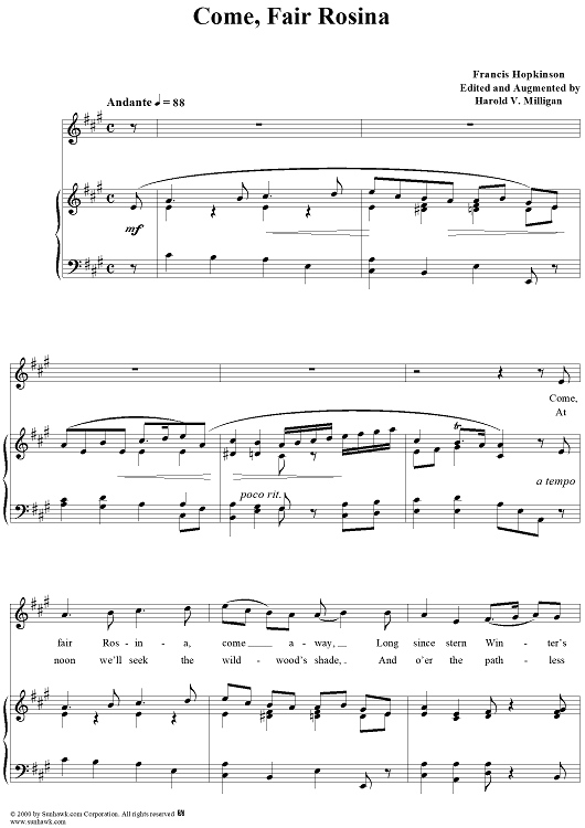 Digital Sheet Music for Come, Fair Rosina by Francis Hopkinson, Harold V. Milligan scored for Piano/Vocal; id:174833
