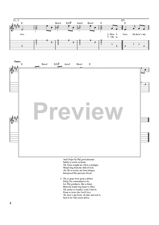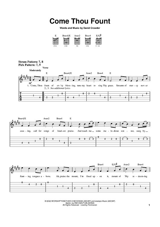 Digital Sheet Music for Come Thou Fount by David Crowder, David Crowder Band scored for Easy Guitar Tab; id:389450