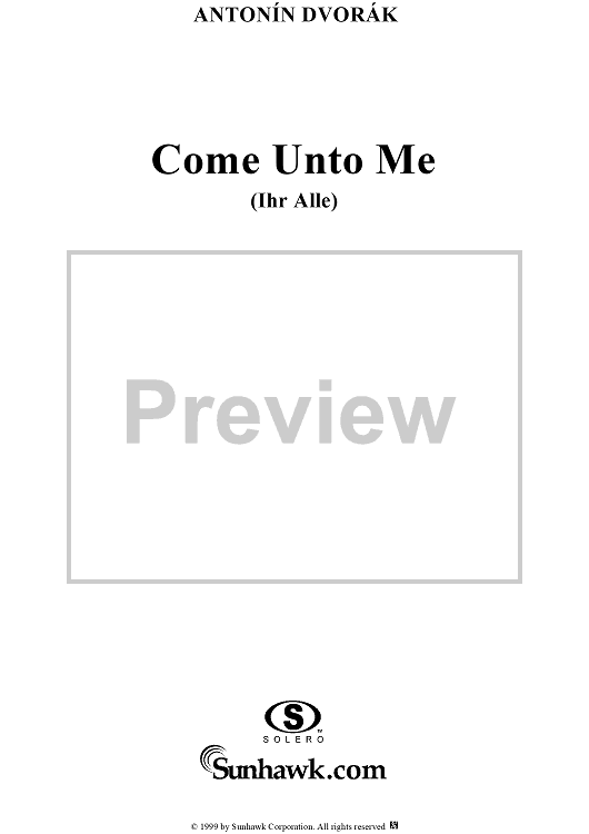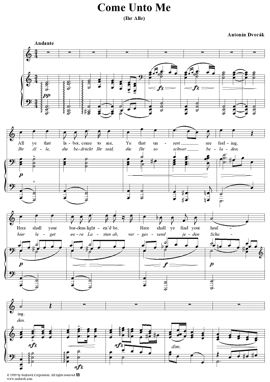 "Come Unto Me" Sheet Music by Antonín Dvorák