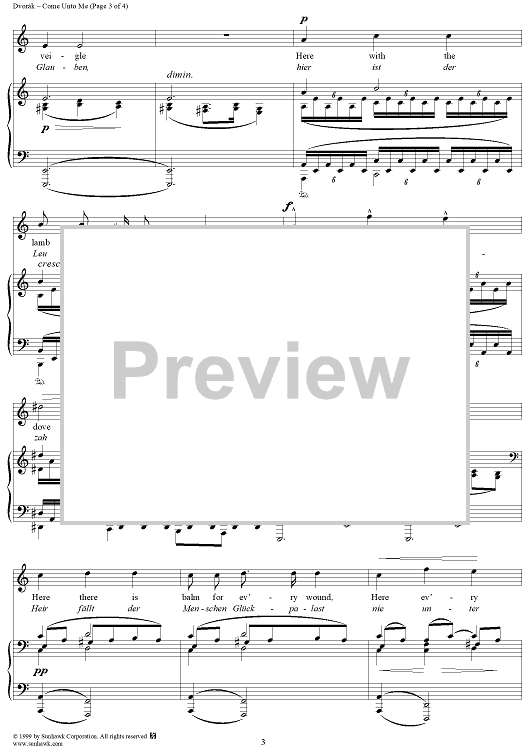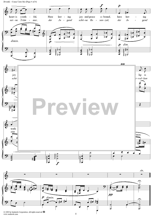 Digital Sheet Music for Come Unto Me by Antonín Dvorák scored for Voice/Piano; id:118183
