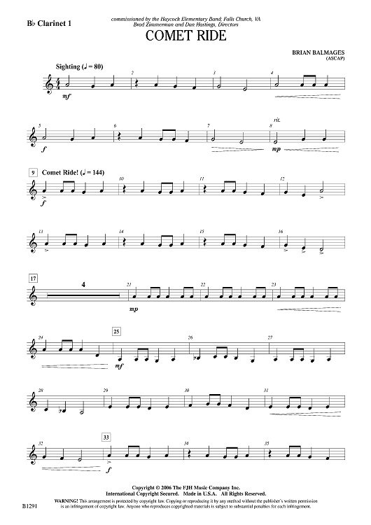 "Comet Ride - Bb Clarinet 1" Sheet Music by Brian Balmages