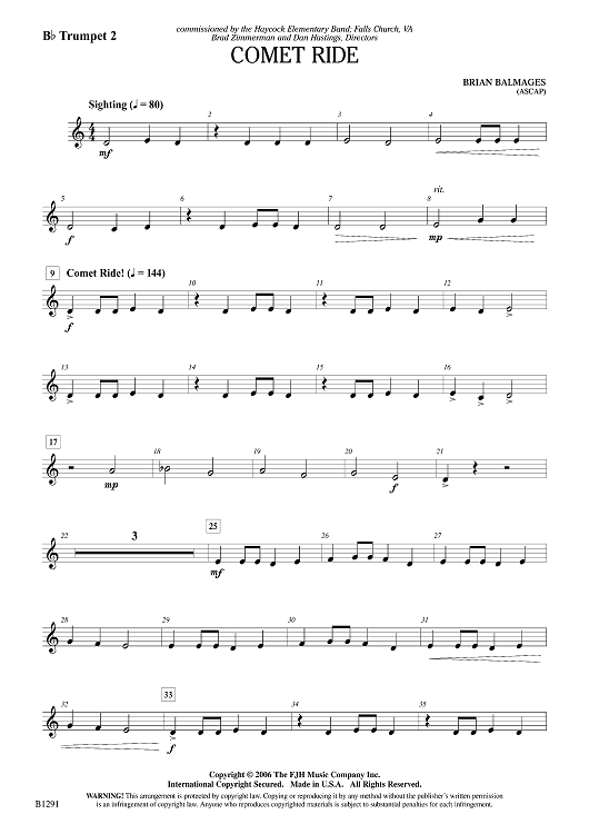 Digital Sheet Music for Comet Ride - Bb Trumpet 2 by Brian Balmages scored for Concert Band; id:443292