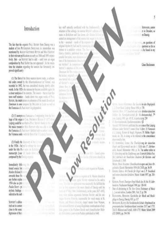 The composer and organist Paul Siefert, baptized in Gdansk on 28 June 1586 and died there on 6 May 1666, belongs to the 'North German organ school'. Thanks to a grant of the town council of Gdansk, Siefert spent the years from 1607 until probably late 1610 studying in Amsterdam where he got important ideas and suggestions as a pupil of Sweelinck. After his return he became deputy organist in Gdansk. From 1611 to 1616 he worked as an organist first at the church in the old town of Königsberg, then at the Warsaw court orchestra. On 23 September 1623 he was appointed organist at the Marienkirche of Gdansk in succession to Michael Weyda where he worked until the end of his life. This edition of his organ works contains 13 fantasias, two chorale preludes and a motet as well as a detailed description of the work in the preface and in the critical report.