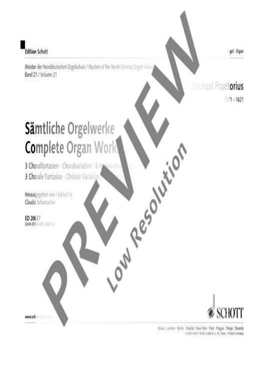 Michael Praetorius (1571-1621) only reached the age of 50, but left a remarkable wealth of compositions and treatises. From a musicological point of view, he takes up a central function as mediator between the well-established German tradition of Protestant church music and the new monodic, concertante style of Italian composition at the beginning of the 17th century. After his apparently self-instructed musical training, he found his first employment as an organist at St. Mary's in Frankfurt/Oder in 1587, and later at the court of the music-loving prince bishop Henry Julius of Braunschweig-Wolfenbüttel. After the latter's death followed unstable and energy-sapping years. Praetorius' organ music covers exclusively cantus firmus arrangements: three chorale fantasias which fascinate by their variety of style, a pair of variations with a rich figuration technique, and six compositionally innovative hymn arrangements. With regard to style, his oeuvre is rooted in the traditional German organ art and provides major practical performance tips based on partly existing texts.