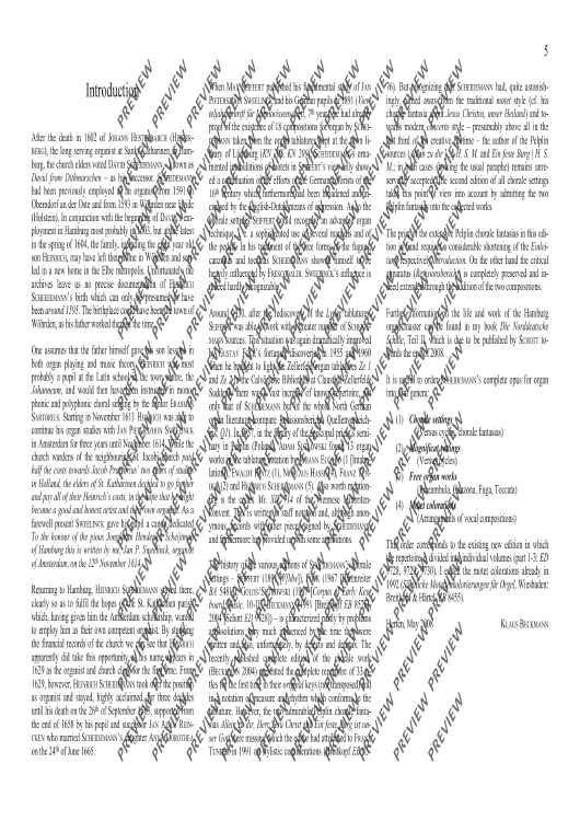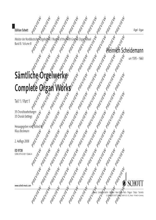 These volumes contain chorale settings by Heinrich Scheidemann (c. 1595-1663). Scheidemann studied with Sweelinck in Amsterdam 1611-1614 and worked as organist at the church of St Katherine in Hamburg for a good three and a half decades from 1629. The new edition contains two additional new works, the chorale fantasias 'Allein zu dir, Herr Jesu Christ' and 'Ein feste Burg ist unser Gott'. They were initially ascribed to Franz Tunder, but, based on the most recent style-critical research, have to be ascribed to Heinrich Scheidemann.