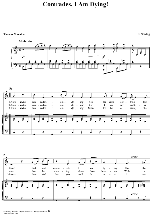 Digital Sheet Music for Comrades, I Am Dying! by B. Sontag, Thomas Manahan scored for Piano/Vocal; id:272363