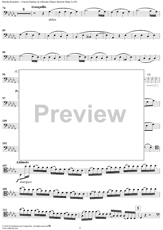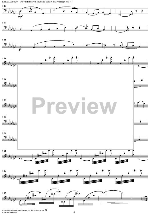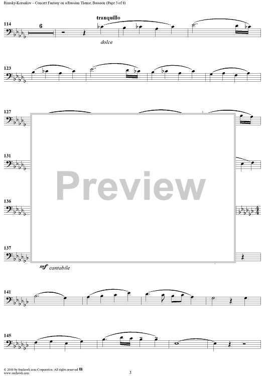 Digital Sheet Music for Concert Fantasy, Op. 33 - Bassoon by Nikolai Rimsky-Korsakov scored for Bassoon/Piano; id:235856
