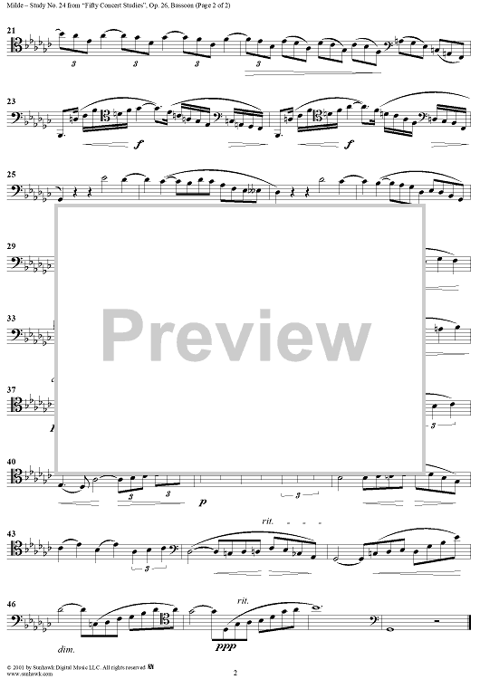 Digital Sheet Music for Concert Study No. 24 by Ludwig Milde scored for Bassoon; id:285624