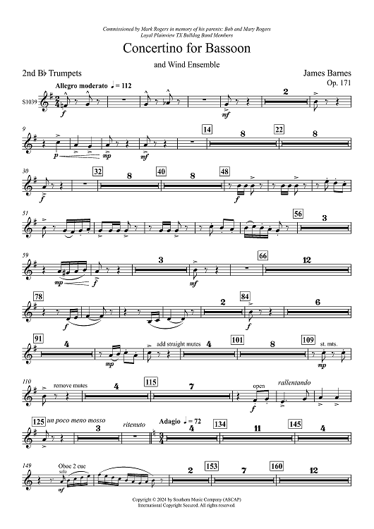 Digital Sheet Music for Concertino for Bassoon and Wind Ensemble - Bb Trumpet 2 by James Barnes scored for Concert Band; id:504661