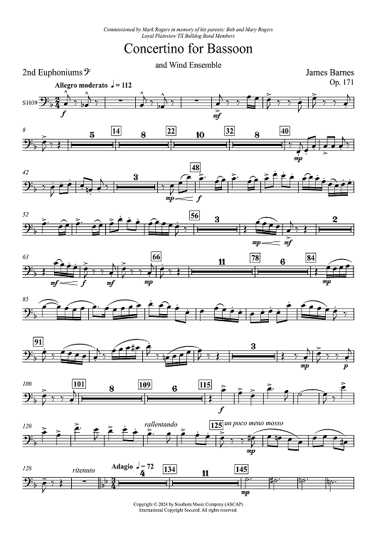 Digital Sheet Music for Concertino for Bassoon and Wind Ensemble - Euphonium 2 BC by James Barnes scored for Concert Band; id:504675