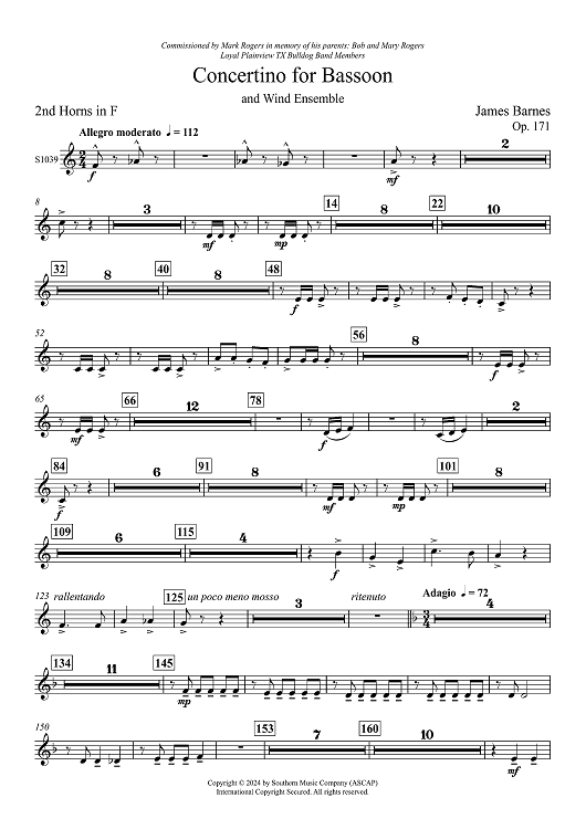 Digital Sheet Music for Concertino for Bassoon and Wind Ensemble - F Horn 2 by James Barnes scored for Concert Band; id:504665