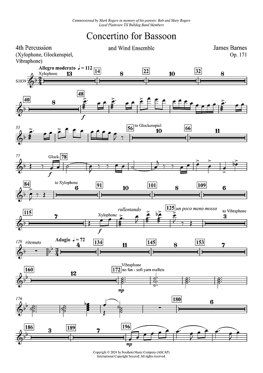 "Concertino for Bassoon and Wind Ensemble - Percussion 4" Sheet Music by James Barnes