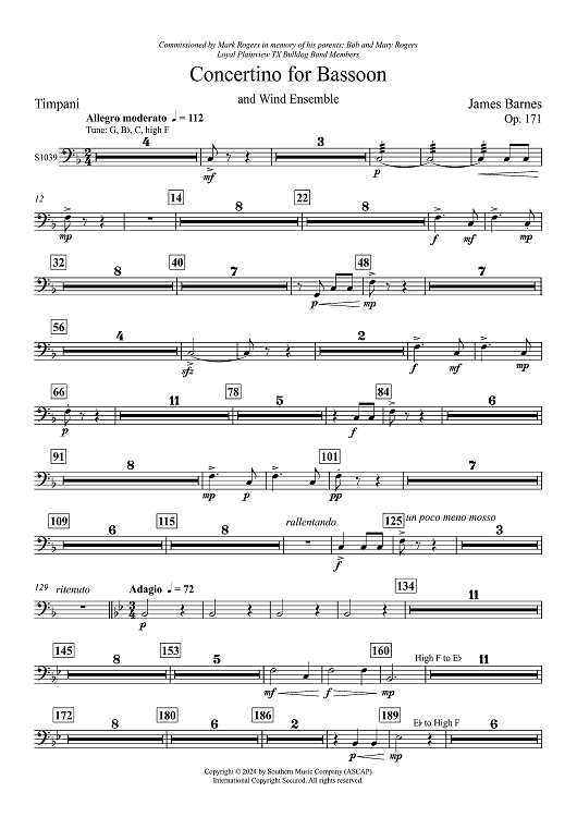 Digital Sheet Music for Concertino for Bassoon and Wind Ensemble - Timpani by James Barnes scored for Concert Band; id:504678