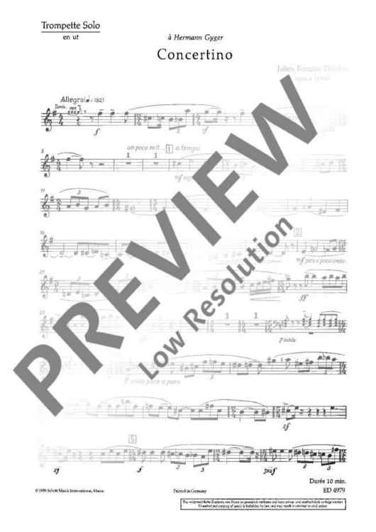 Digital Sheet Music for Concertino - Piano Score and Solo Part by Julien-François Zbinden scored for Trumpet, String Orchestra And Side/snare Drum; id:473308