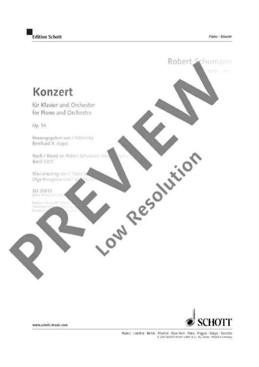 "Concerto A minor - Piano Reduction" Sheet Music by Robert Schumann