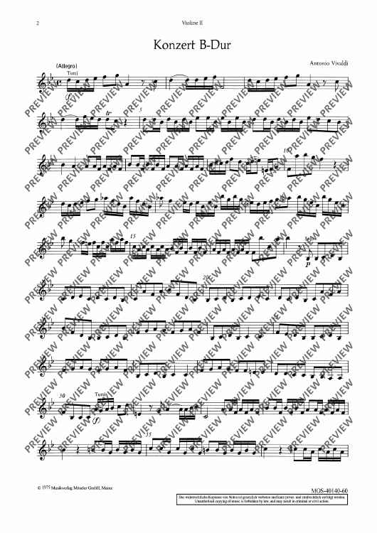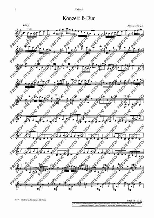 "Concerto B-flat major - Set of Parts" Sheet Music by Antonio Vivaldi