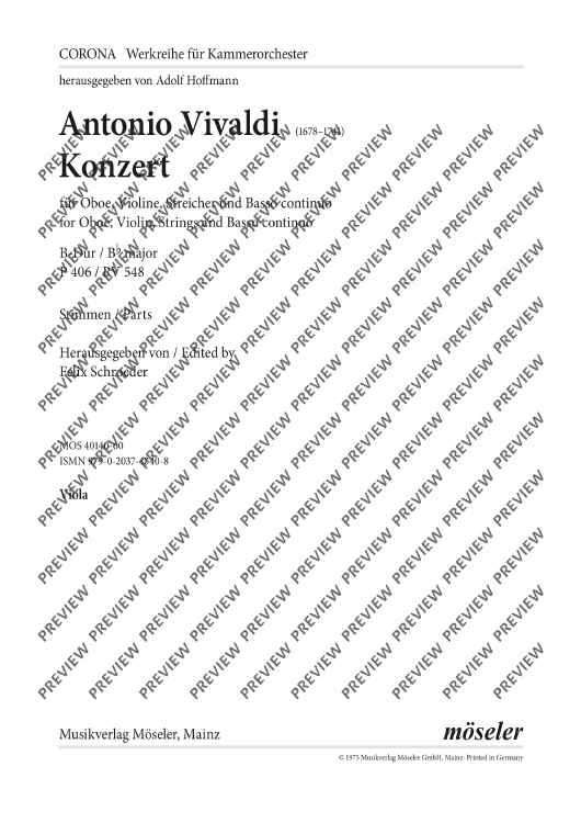 Digital Sheet Music for Concerto B-flat major - Set of Parts by Antonio Vivaldi, Felix Schroeder scored for Oboe, Violin, String Orchestra Ud Basso Continuo; id:506883