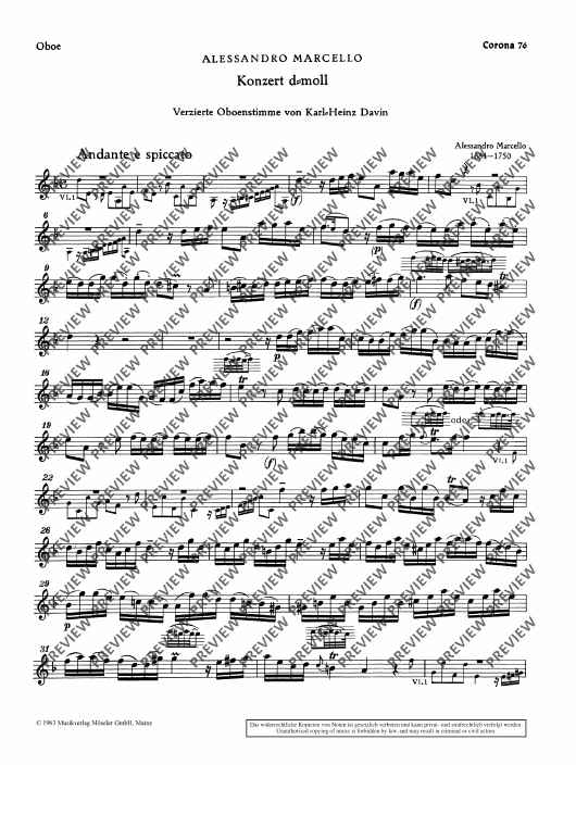 "Concerto d minor" Sheet Music by Alessandro Marcello