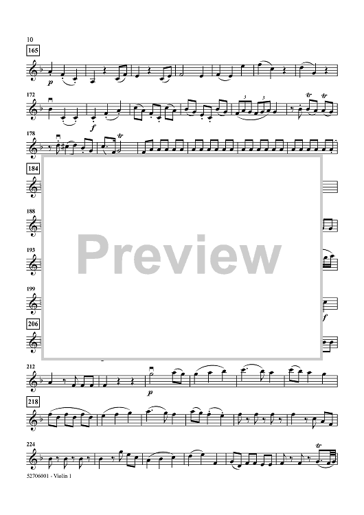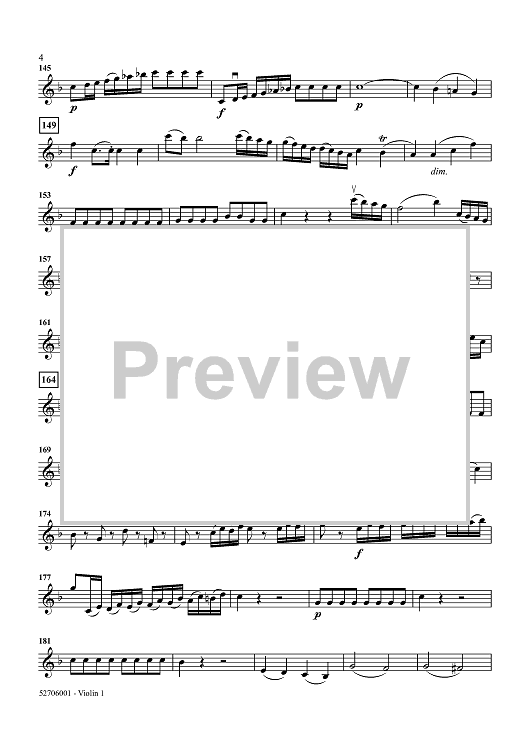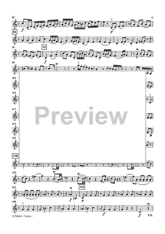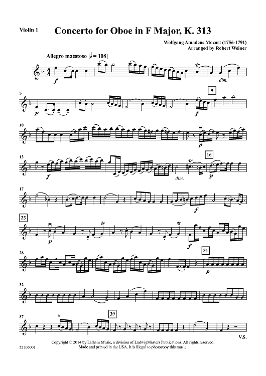 Digital Sheet Music for Concerto for Oboe in F Major, K. 313 for Oboe and String Quartet - Violin 1 by Wolfgang Amadeus Mozart, Robert Weiner scored for Oboe and String Quartet; id:452318