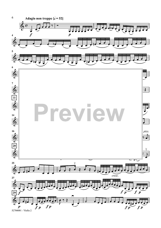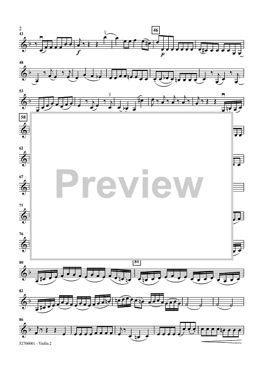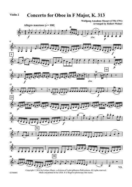 Digital Sheet Music for Concerto for Oboe in F Major, K. 313 for Oboe and String Quartet - Violin 2 by Wolfgang Amadeus Mozart, Robert Weiner scored for Oboe and String Quartet; id:452319