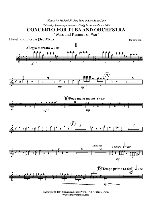 "Concerto For Tuba - Flute 1 & Piccolo" Sheet Music by Barbara York