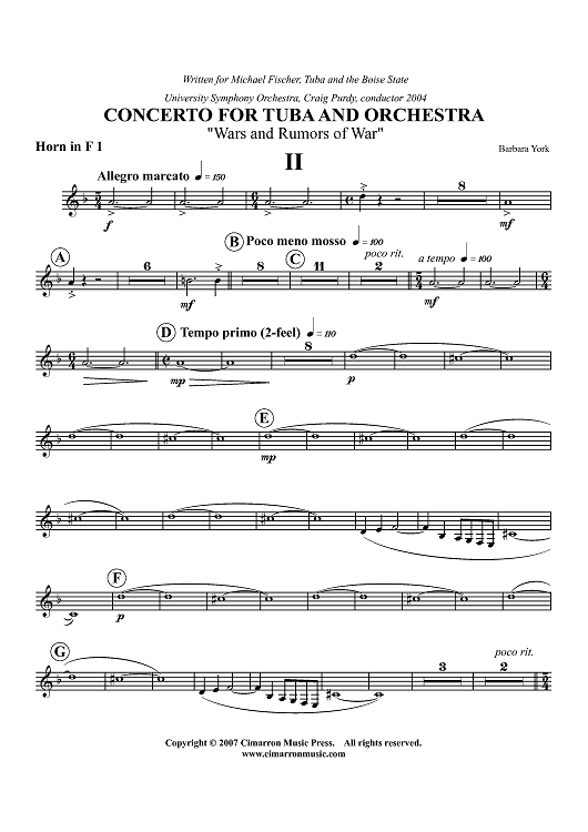 "Concerto For Tuba - Horn 1 in F" Sheet Music by Barbara York