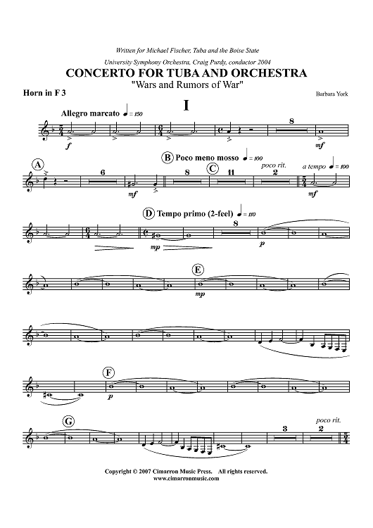 "Concerto For Tuba - Horn 3 in F" Sheet Music by Barbara York