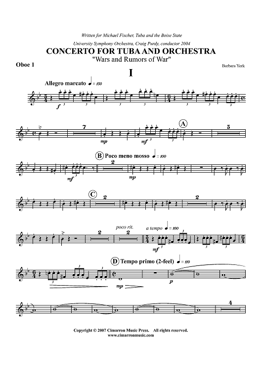 "Concerto For Tuba - Oboe 1" Sheet Music by Barbara York