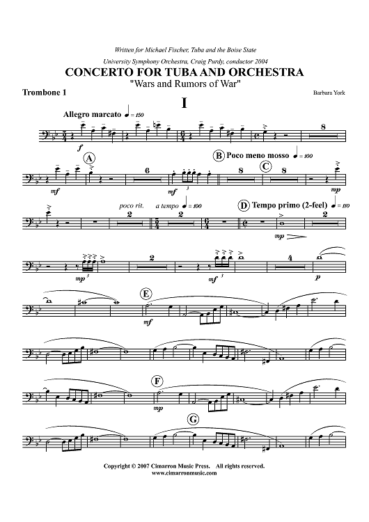 "Concerto For Tuba - Trombone 1" Sheet Music by Barbara York