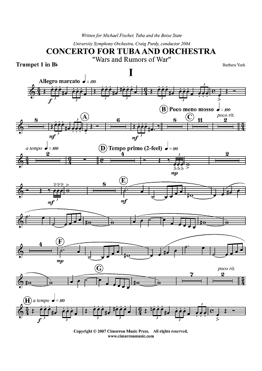"Concerto For Tuba - Trumpet 2" Sheet Music by Barbara York