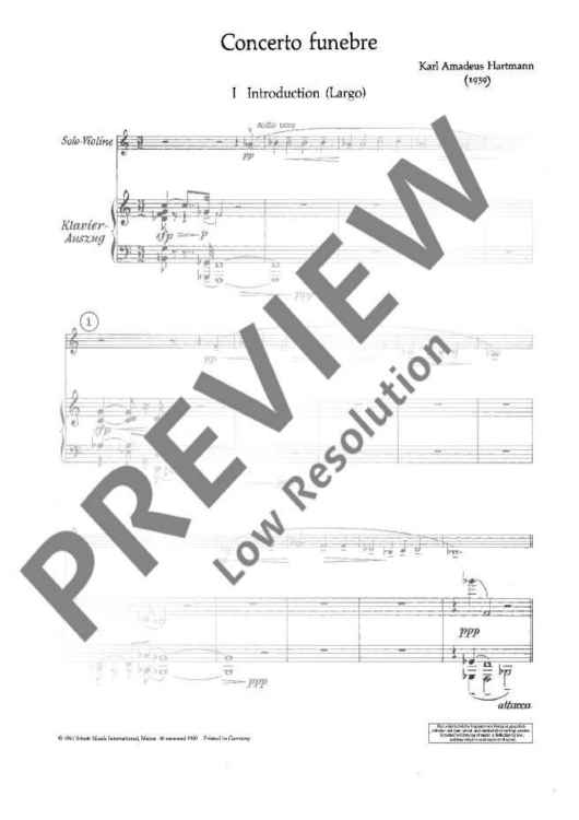 "Concerto funebre - Piano Score and Solo Part" Sheet Music by Karl Amadeus Hartmann
